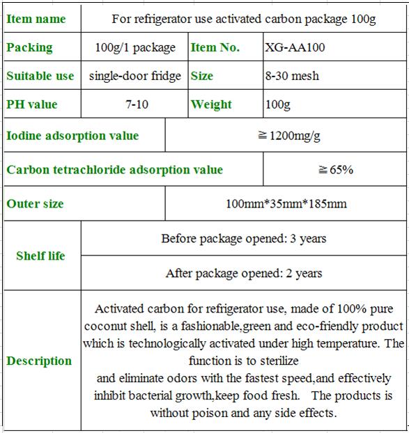 For refrigerator use activated carbon package (100g)