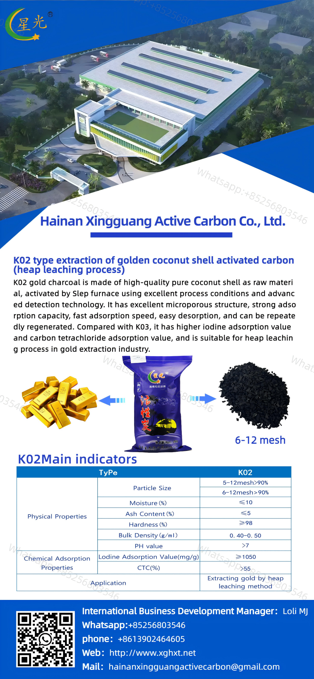 K02 Type Coconut Shell Activated Carbon for Gold Extraction by Heap Leaching Method