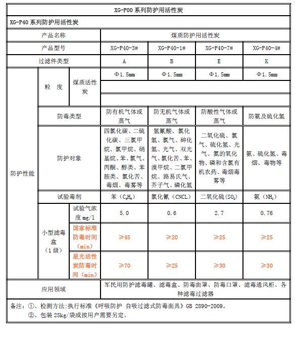 XG-P40系列防護(hù)用活性炭